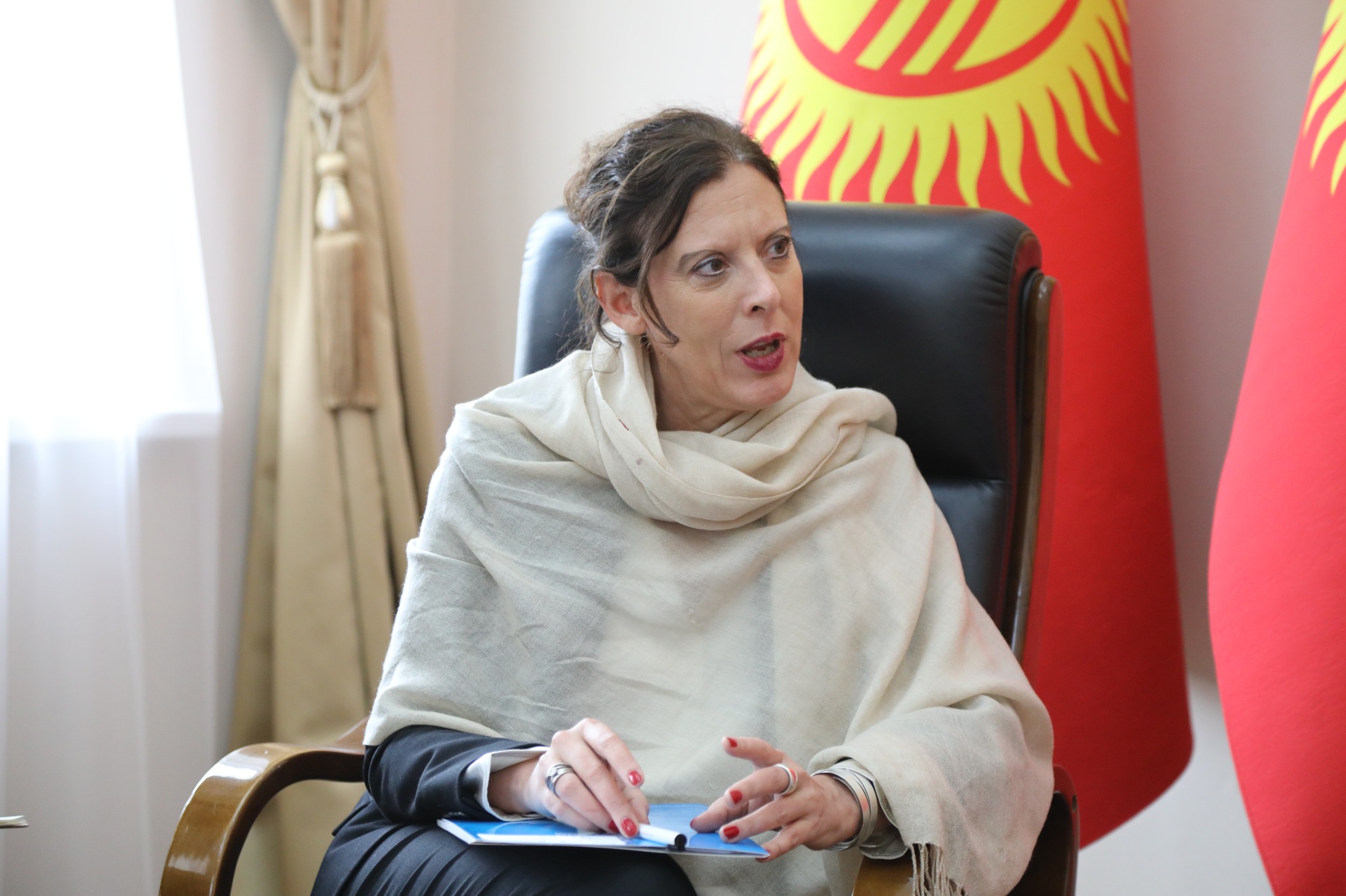 Бишкек, 01.11.22. /Кабар/. КР маданият, маалымат, спорт жана жаштар саясаты министри Алтынбек Максутов БУУнун Кыргызстандагы туруктуу координатору Антье Гравени кабыл алды.