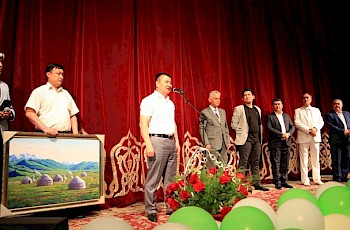 Бишкек, 02.08.23. /Кабар/. Маданият, маалымат, спорт жана жаштар саясаты министри Алтынбек Максутов Кемин райондук элдик театрынын артисттери жана Сокулук райондук "Ак Саамай" фольклордук ансамблинин чыгармачыл жамааты менен жолугушту.