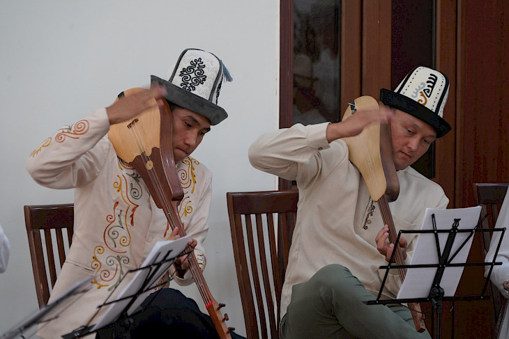 Ведомствонун басма сөз кызматынан билдиришкендей, жолугушуу фольклордук ансамблдин чыгармачылыгын угуу жана элдик театрдын репертуары менен жакындан таанышуу максатында уюштурулду.