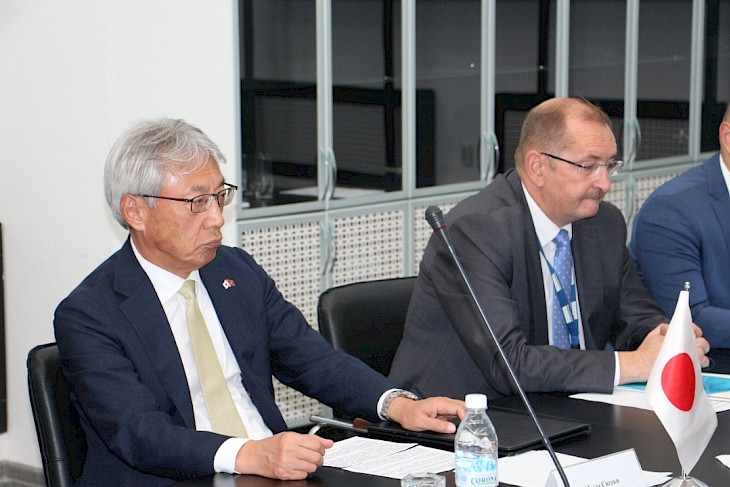 Бишкек, 05.09.22. /Кабар/. 2-сентябрда Мамлекеттик бажы кызматынын төрагасы Самат Исабеков менен ЕККУнун элчиси Алексей Рогов жана Япониянын Кыргызстандагы элчиси Маэда Сигеки менен жолугушуусу болуп өттү.