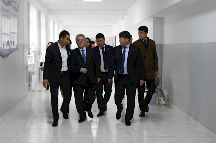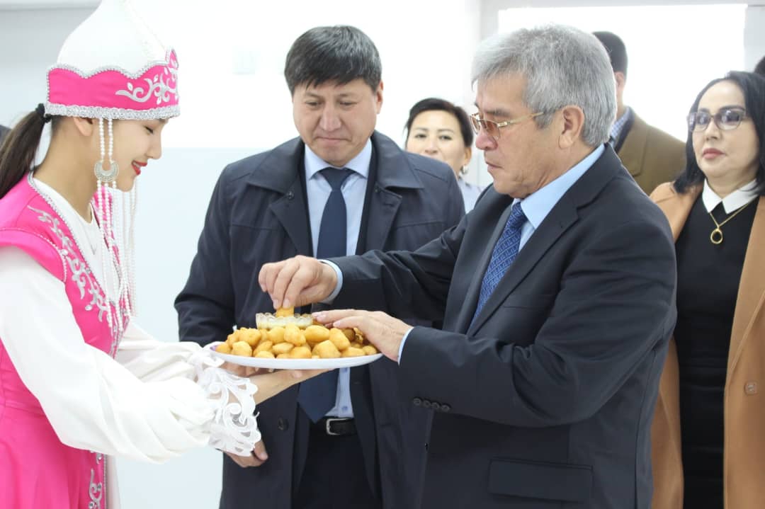 Президенттин администрациясынын маалыматтык саясат кызматы билдиргендей, окуучулар келген конокторду кыргыз комузунун кылдарынын күүсү менен тосуп алышты. Андан соң мамлекеттик катчы балдардын каратэ менен машыгып жатканын көрүп, математика сабагына күбө болуп кетти.