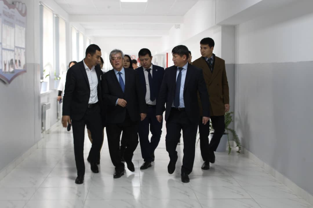 Бишкек, 25.11.23./Кабар/. Кыргызстандын мамлекеттик катчысы Сүйүнбек Касмамбетов жана Октябрь районунун акими Жаныбек Орозалиев Бишкек шаарындагы №100 мектепте мугалимдер жана окуучулар менен жолугушту.