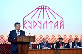 "Бүгүнкү курултай Кыргызстандын соңку тарыхында 2023-жылы июль айында кабыл алынган Элдик курултай тууралуу Конституциялык мыйзамдын негизинде өлкөдө өтүп жаткан алгачкы курултай", - деди мамлекеттик катчы.