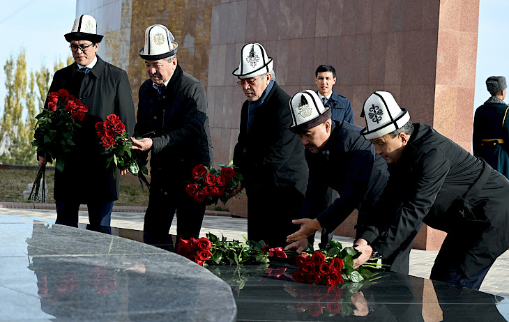 Жогорку Кеңештин төрагасы Нурланбек Шакиев, Жогорку соттун төрагасы Замирбек Базарбеков, министрлер кабинетинин төрагасынын биринчи орун басары Адылбек Касымалиев, министрлер кабинетинин төрагасынын орун басары Эдил Байсалов жана башкалар менен биргеликте алар 1916-жылдагы трагедиялуу окуялардын курмандыктарына арналган эстелик мемориалына, саясий репрессиянын курмандыктарына арналган эстелик мемориалына жана жазуучу Чыңгыз Айтматовдун бейитине гүл коюшту.