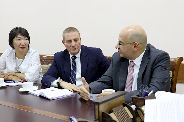 Бишкек, 09.10.19. /Кабар/. Билим берүү жана илим министри Каныбек Исаков IFC эл аралык каржылык корпорациясынын өкүлдөрү Петью Николов, Салтанат Алымкулова жана Нассер Масоудду кабыл алды.
