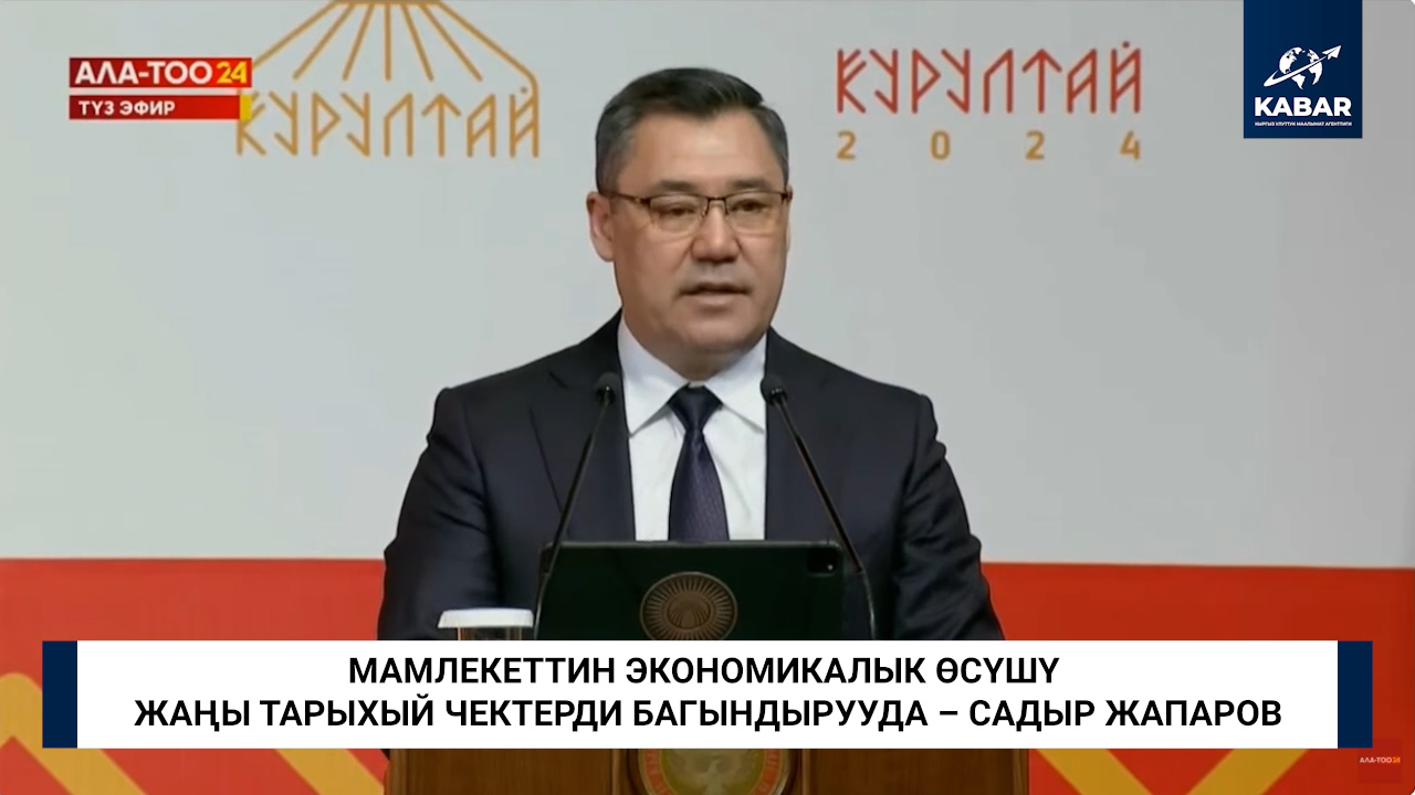 Бишкек, 20.12.24. /Мээрим Дүйшөналиева - Кабар/. Мамлекеттин экономикалык өсүшү жаңы тарыхый чектерди багындырууда. Бул тууралуу президент Садыр Жапаров бүгүн Бишкекте өтүп жаткан III Элдик курултайдагы кайрылуусунда билдирди.