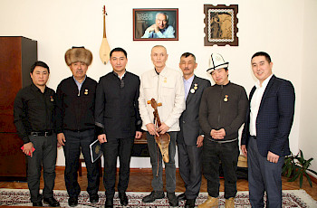 Андан соң, өнөр адамдарына Жогорку Кеңештин жана Маданият, маалымат, спорт жана жаштар саясаты министрлигинин ведомстолук сыйлыктары, меценат Нургалы Асаналиев тарабынан бир катар манасчыларга 2 бөлмөлүү үйдүн документтери тапшырылды.