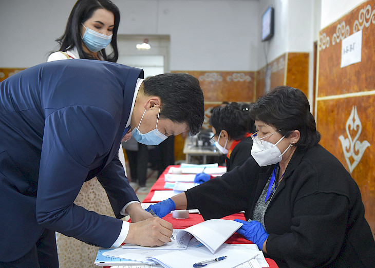 Бишкек, 11.04.21. /Кабар/. Премьер-министр Улукбек Марипов Бишкек шаардык кеңешине депутаттарды шайлоодо жана референдумда добуш берди.