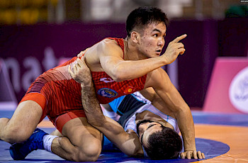 Жуманазарова 68 кг салмакта россиялык Ханум Велиевага каршы килем үстүнө чыгып, 3:2 эсебинде артыкчылык менен жеңишти илип кетти.