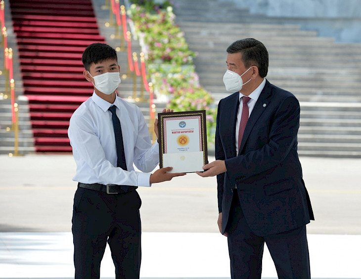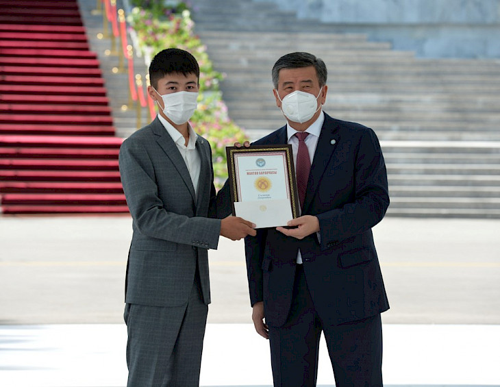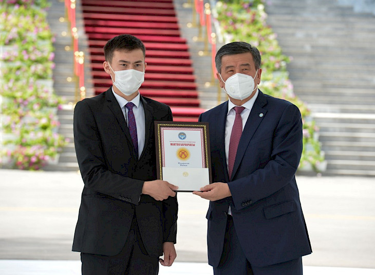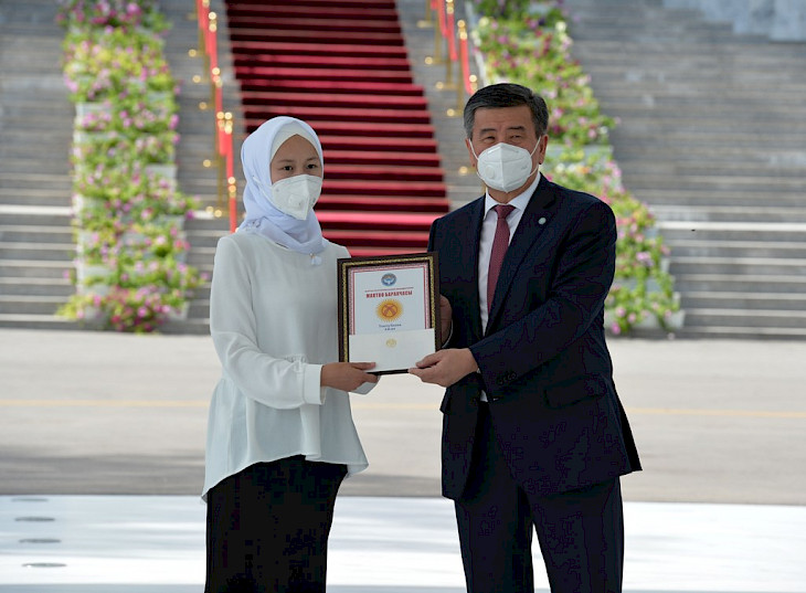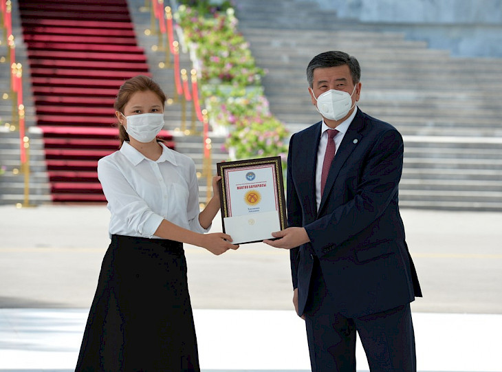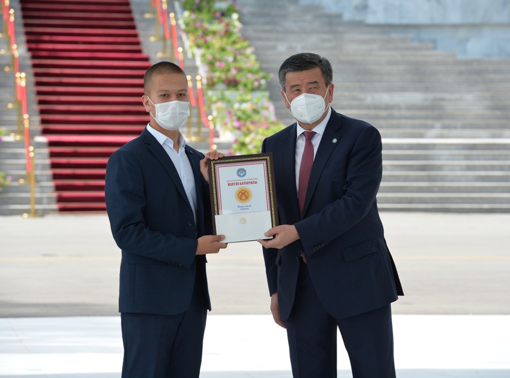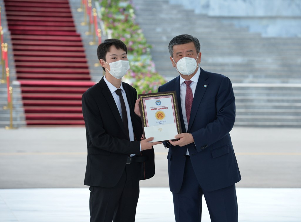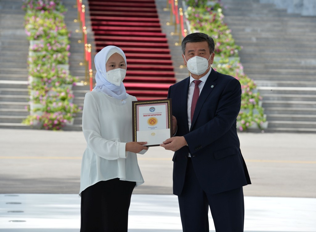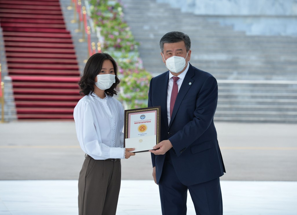 Бүгүн, 28-июлда, Кыргыз Республикасынын Президенти Сооронбай Жээнбеков аларга «Алтын сертификаттарды» тапшырды. Президенттин аппаратынын маалыматтык саясат бөлүмүнөн кабарлашкандай, салтанаттуу иш-чара «Ала-Арча» мамлекеттик резиденциясында өттү.