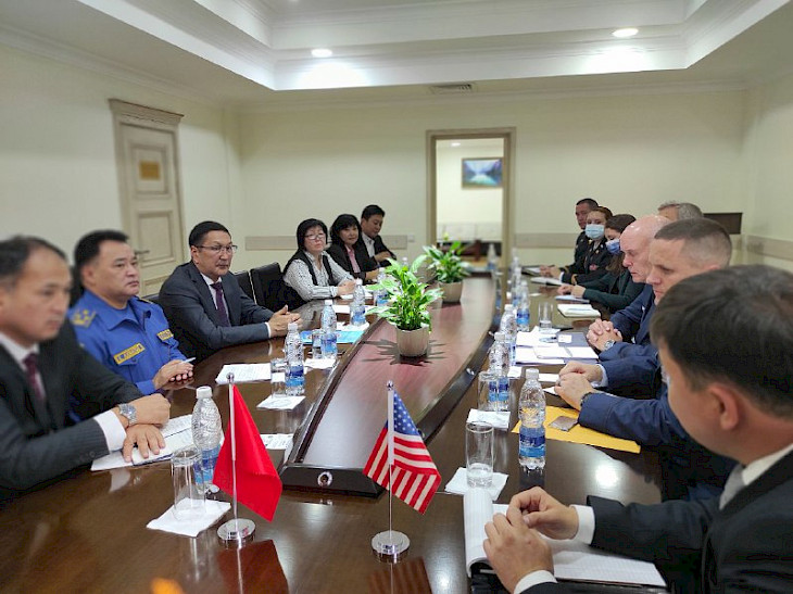 Бишкек, 28.09.21. /Кабар/. Кыргыз Республикасынын өзгөчө кырдаалдар министри Бообек Ажикеев АКШнын Монтана штатынын Улуттук гвардиясынын жетекчиси Питер Ронек, Орто Азиядагы борбордук комитетинин департаментинин башчысы Корт Олсон жана Кыргызстандагы элчилигинин өкүлдөрү менен жолугушту. Бул тууралуу КР ӨКМдин басма сөз кызматы билдирет.