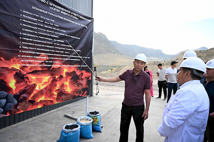 Андан соң, Акылбек Жапаров Араван районундагы Көмүр брикет иштеп чыгаруучу заводдун ишмердүүлүгү менен таанышты. 143,1 млн сомго курулуп бүткөн заводдо учурда 15 адам иш менен камсыз болгон. Кубаттуулугу жылына 130 миң тоннаны түзөт.