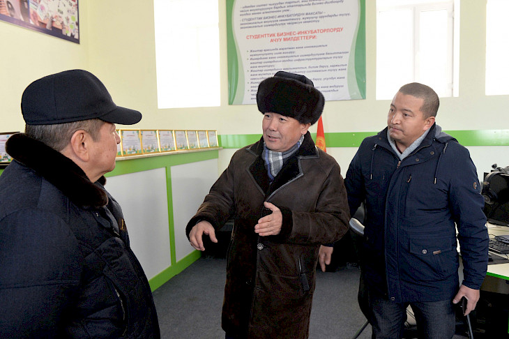 Жумушчу сапарынын соңунда министрлер кабинетинин башчысы Жалал-Абад мамлекеттик университетинде болуп, окуу процесси менен таанышып, окуу жайды өнүктүрүү боюнча бир катар милдеттерди койду.