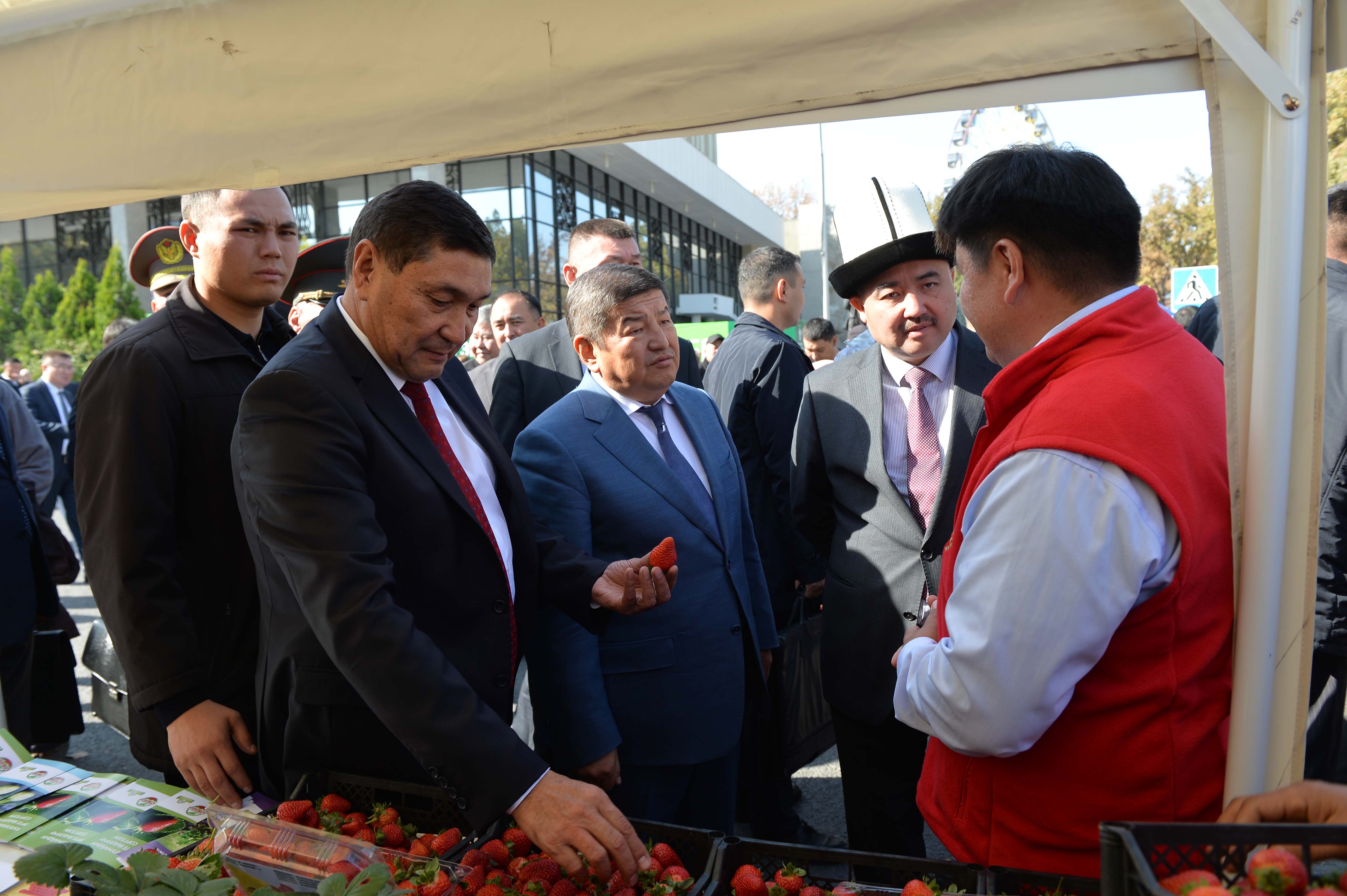 Акылбек Жапаров көргөзмөгө коюлган продукциялар менен таанышып чыгып, көргөзмө фермерлердин кесиптик тажрыйба алмашуусунун негизги аянтчасы болуп саналаарын жана айрым ишканалар жана бүтүндөй айыл чарба тармагы экономиканын өсүшүнө салым кошуп жатканын белгиледи.
