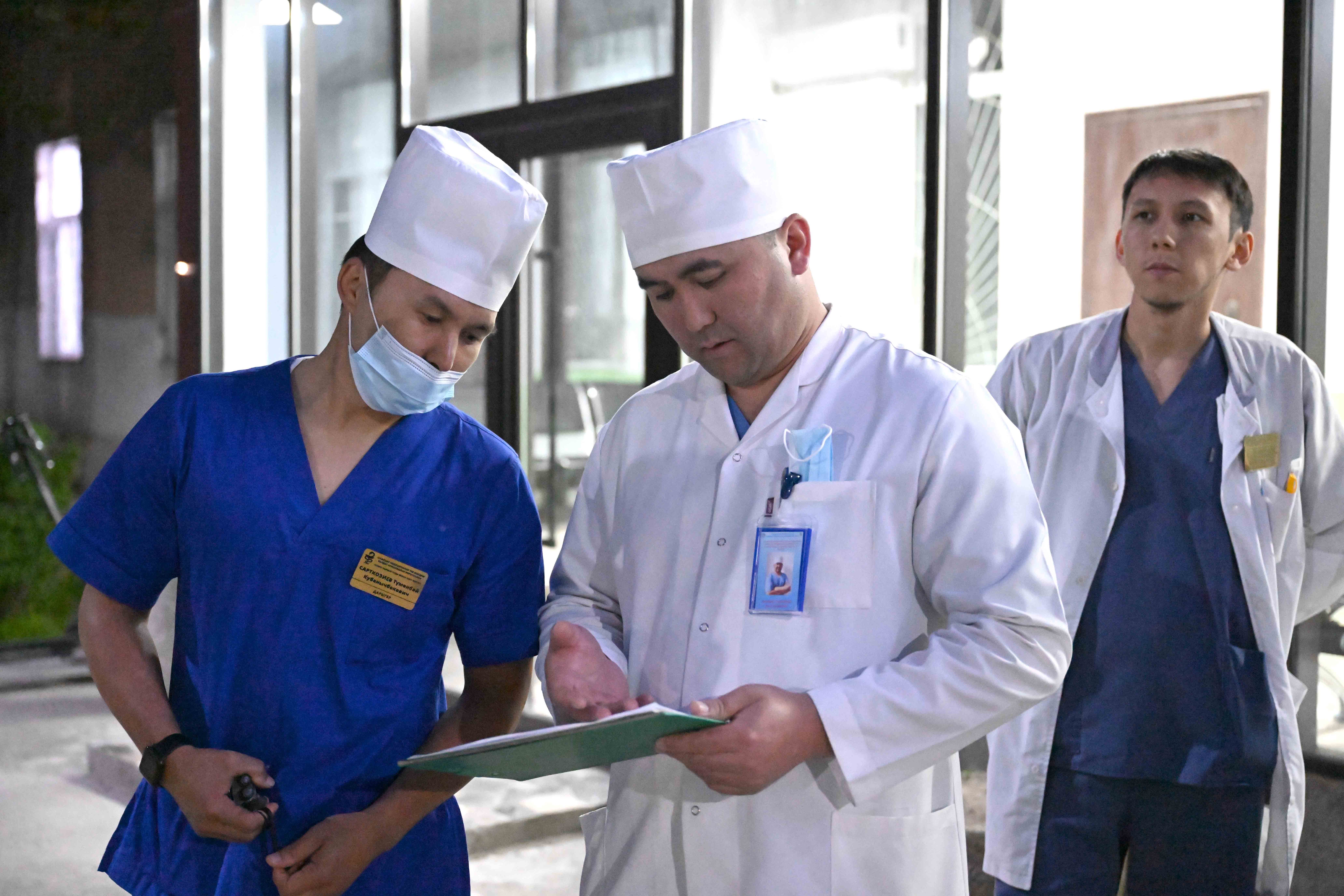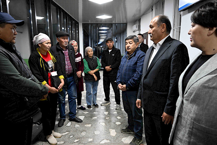 Жабыркаган балдардын жакындары менен баарлашкан Акылбек Жапаров аларга колдоо сөздөрүн айтып, балдар сапаттуу дарыланып, күнү-түнү дарыгерлердин көзөмөлүндө болорун билдирди.