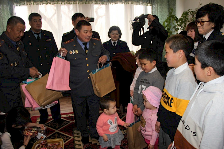 Андан соң, Нарын облусунун прокурору менен Чаек айылындагы "Нур-Булак" балдар үйүнө барышып, ал жакта тарбияланып жаткан балдардан кабар алып, алар менен баарлашып, өздүк курамдын атынан даярдалган белектер тапшырылып, келечек ээлерине ден соолук, окууларына ийгилик жана көптөгөн ийгиликтердин ээси болуусун каалап өттү А.Жумабеков.