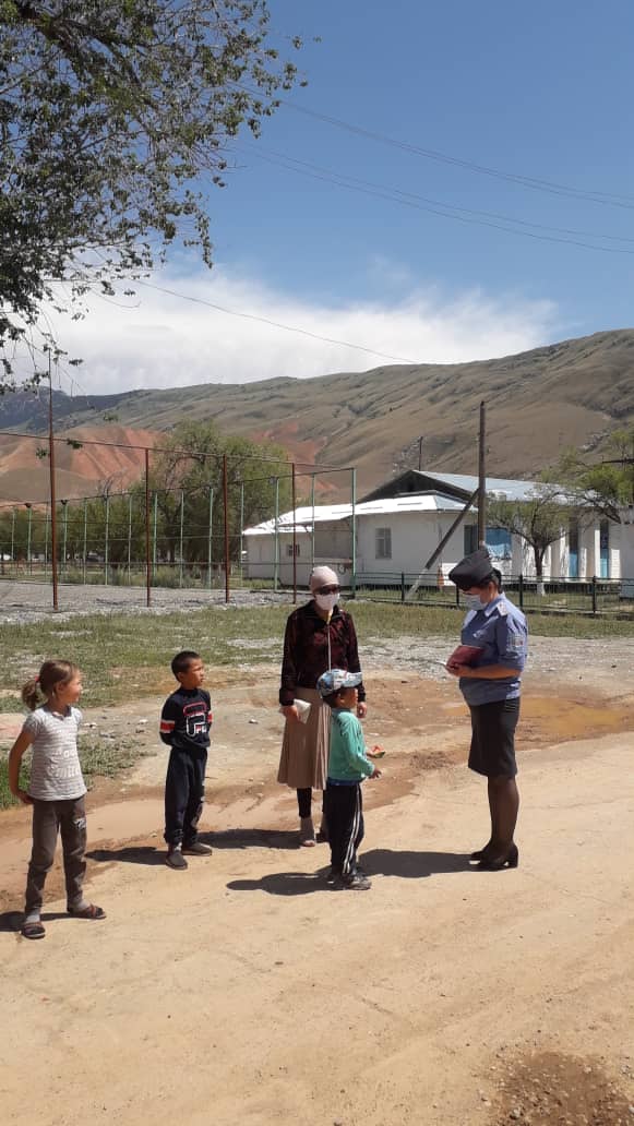 Бүгүнкү күндө Нарын РИИБнин кызматкерлери, айыл өкмөт кызматкерлери, үй-бүлөлүк дарыгерлер тобунун кызматкерлери менен биргеликте алдын алуу иштерин жүргүзүү менен түзүлгөн топ дүкөндөрдү, эл көп чогулган жерлерди, мечиттерди, ички каттамда эл ташыган таксисттерди жана жүргүнчүлөрдү тазалыкты сактоого чакырып жеринде профилактикалык түшүндүрүү иштери жүргүзүлдү.