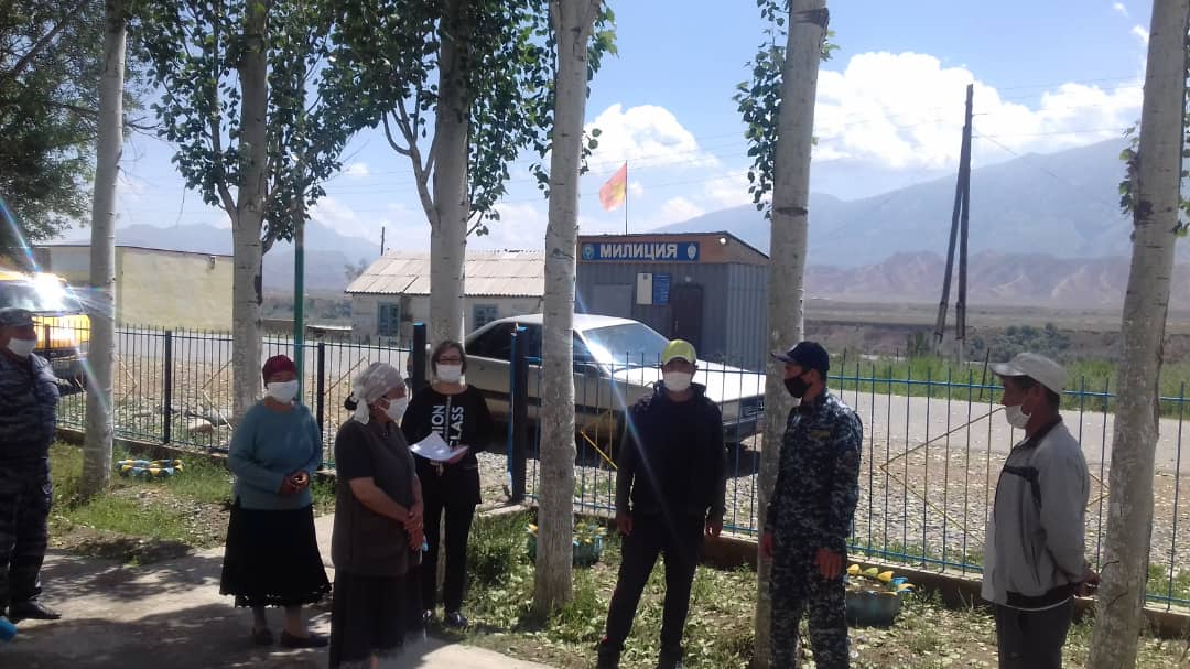 Маалыматка ылайык, Нарын районунун аймагында милиция кызматкерлери тарабынан жугуштуу илдеттин алдын алуу, калк арасында жайылып кетүүсүнө жол бербөө, үй карантинин талаптарын, шарттарын туура аткарылышын көзөмөлдөө боюнча жергиликтүү саламаттык сактоо кызматкерлери менен биргеликте атайын графиктин негизинде иш-чаралар жүргүзүлүп жатат.