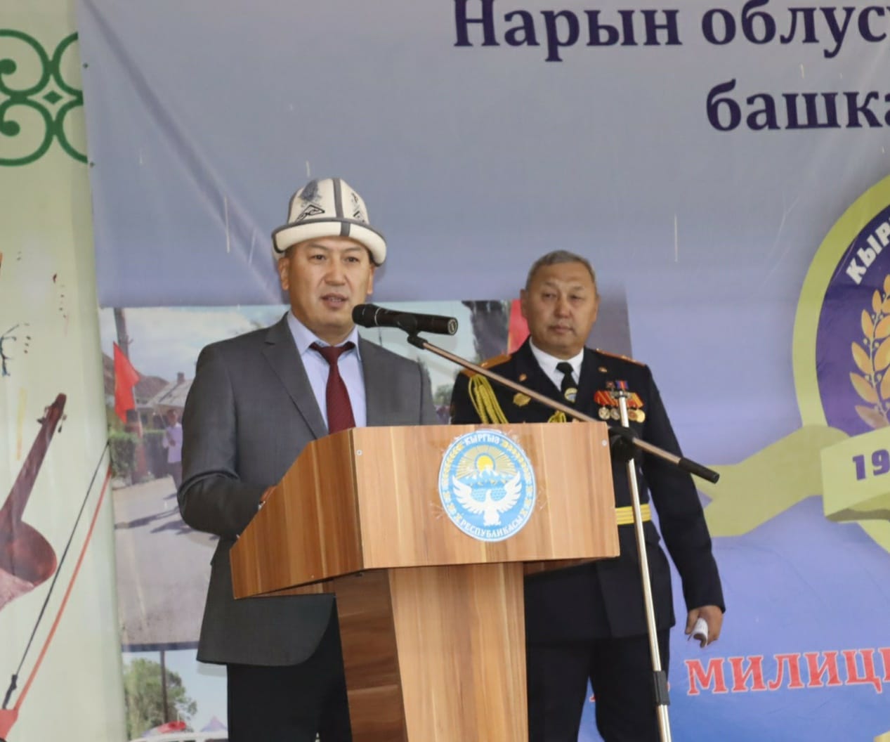 Майрамдык иш-чарага катышкан президенттин облустагы өкүлү Алтынбек Эргешов кыргыз милициясынын, бир кылымдык тарыхына, коомдо ээлеген татыктуу ордуна баа берүү менен куттуугун жолдоп, эмгек алдыңкыларына сыйлыктарын ыйгарды.