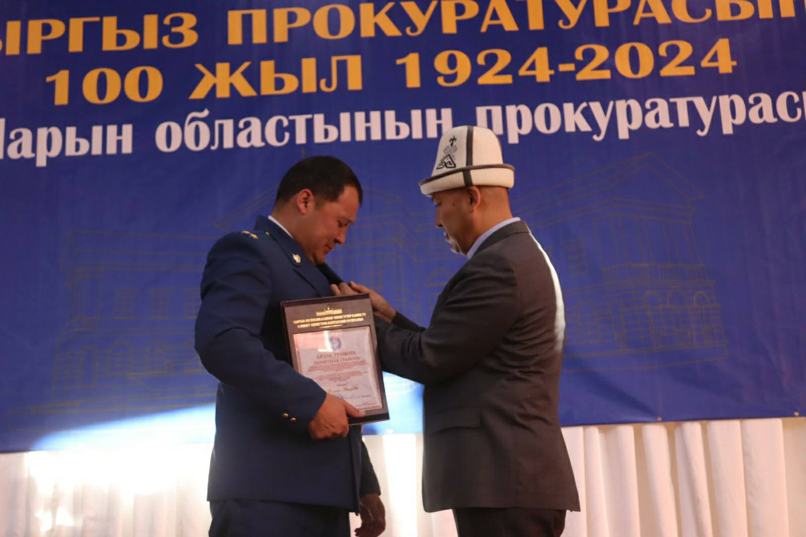Прокуратура кызматкерлерин мааракеси менен куттуктаган президенттин өкүлү Алтынбек Эргешов Нарын облустук прокуратурасынын даңктуу тарыхый жолуна токтолуп, бүгүн да прокуратура кызматынын алдында абдан чоң милдеттер турганын белгиледи.