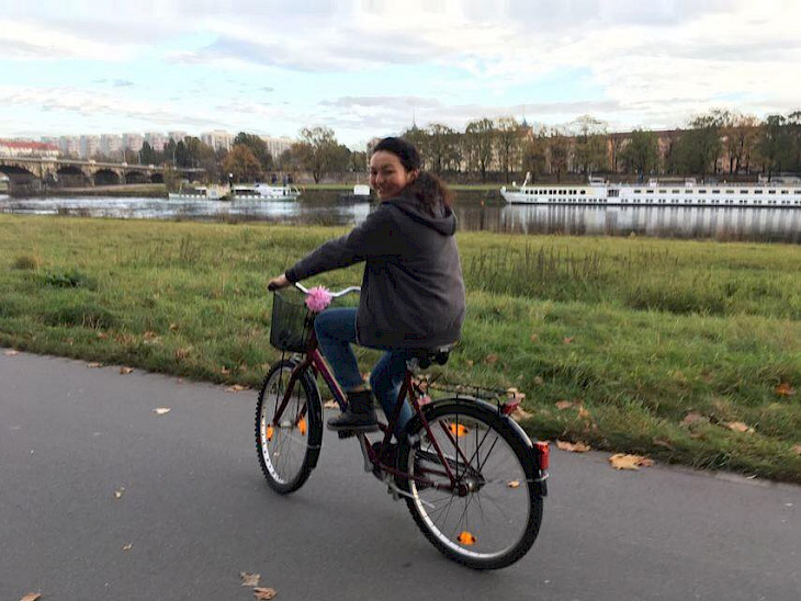 - Албетте, алгачкы келген күнүм азыркыдай эсимде. Мен барчу үй-бүлөнүн Берлинге келип мени тосуп алганга шарты жок болуп, Дрезденге чейин өзүм келүүгө туура келди. Аэропорттон чыкканда эле абасы, элдери жада калса дарактардын жалбырактары да башкача көрүндү көзүмө. Бул жакта немис калкы бизчелик меймандос келишпейт экен, бирок ар дайым жардам колун сунганга даяр турушат. Мага да жол көрсөтүшүп, бара турчу багытымды айтып беришти. Ошентип, мени күтүп жаткан үй-бүлөгө да келдим. Мени абдан жылуу кабыл алышты, бардыгын түшүндүрүп, көрсөтүп жатышты. Башында бири-бирибиз менен англис тилинде сүйлөшүп жаттык, албетте немисче сүйлөгөнгө да аракет кылып жаттым. Көп өтпөй немис тили курсуна жазылып, үй-бүлөдөгү кичинекей балдар менен сүйлөшүп, ойноп жатып тез эле үйрөнүп кеттим.