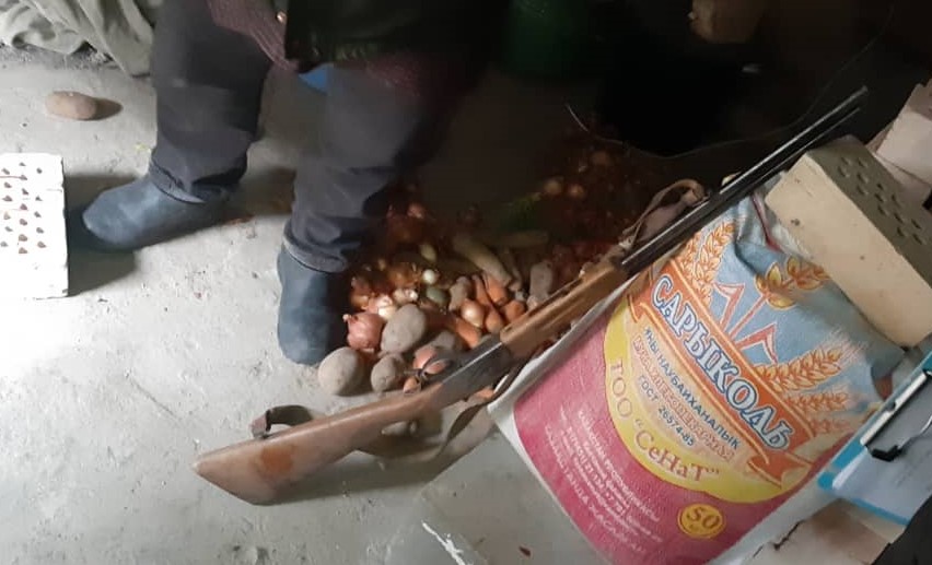 Тинтүү учурунда мыйзамсыз, эч кандай уруксат кагаздары жок сактап жүргөн “Белка” үлгүсүндөгү №Р3723 сандуу ок атуучу курал, төрт даана гильза жана даана ок алынган. Табылган ок атуучу куралдарга соттук-баллистикалык экспертиза дайындалып, учурда тергөө амалдары жүргүзүлүп жатат.