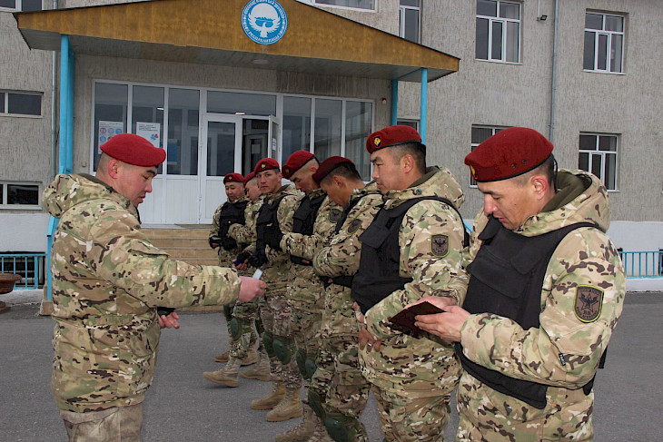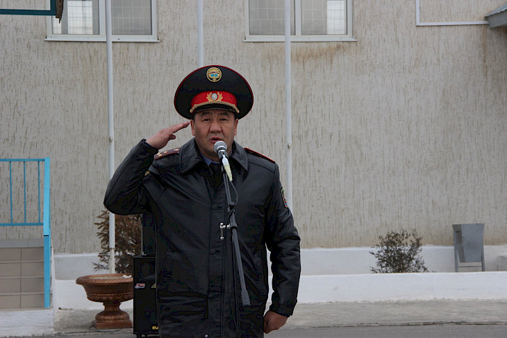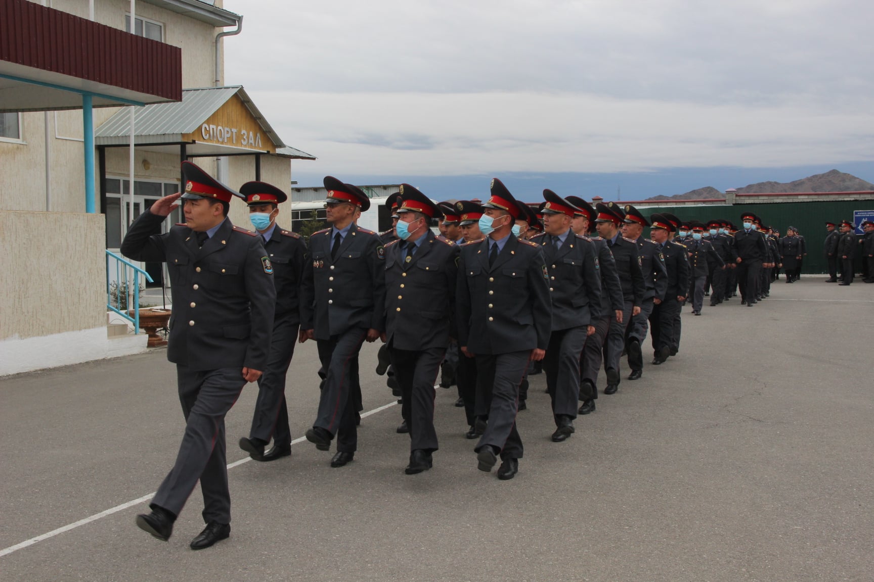 Саптык катарга тизилген кызматкерлердин жазгы кийимдери текшерилип, саптык кароо болуп өттү.