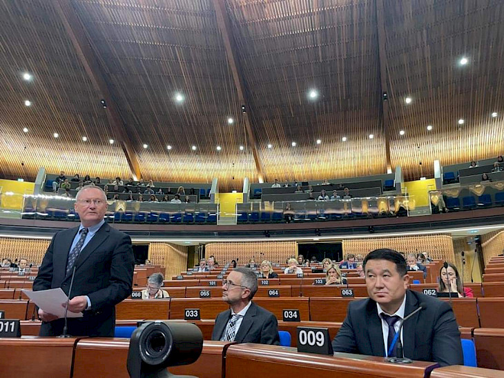 Бишкек, 04.10.24. /Кабар/. Жогорку Кеңештин төрагасынын орун басары Нурбек Сыдыгалиев Европа кеңешинин Парламенттик ассамблеясынын кезектеги күзгү сессиясына катышууда.