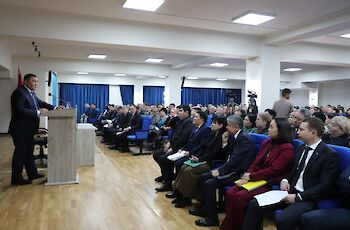 Бишкек, 19.11.24. /Кабар/. Бишкек шаарынын Октябрь акимчилигинин имараты жарыктандырылды.