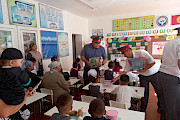 Ысык-Көл облустук милициясынын башчысы Канат Жумагазиев Түп районунун Сары-Тологой айылындагы К.Эгембердиев атындагы орто мектебине Билим күнү менен окуучуларды жана мугалимдерди куттуктап, өзүнүн атынан башталгыч класстарынын окуу куралдарын жана жеке коргоонучу каражаттарды тапшырды.