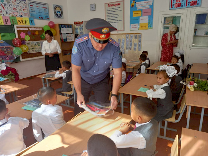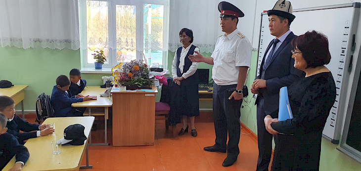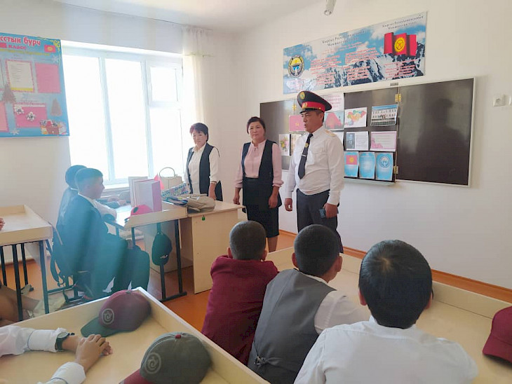 Облус аймагындагы билим берүү мекемелерине шаар-райондук милициясынын башчылары, жашы жете электер менен иштөө инспекторлору жана жол кызматкерлери ата-энелердин катышуусунда жаңы мектеп босогосун аттаган бөбөктөргө ийгилик каалап, жол коопсуздугу боюнча маек курушса, жогорку класстардын окуучуларына укук сабактары өткөрүлдү.