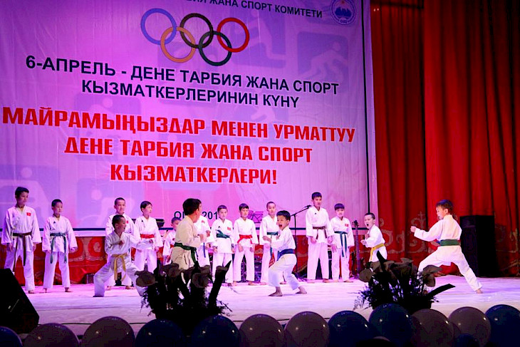 Бишкек, 06.04.19. /Кабар/. С. Ибраимов атындагы Ош улуттук драма театрында 6-апрель-дене тарбия жана спорт кызматкерлеринин күнүнө карата салтанаттуу иш-чара өттү.