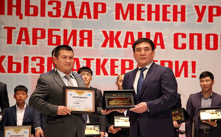 Майрамдык иш-чаранын жүрүшүндө, өткөн жылы мыкты жетишкендиктерге жетишкен 50дөн ашуун спортчуларга, машыктыруучуларга жана ардагер машыктыруучуларга акчалай сыйлыктар жана жеке статуэткалар тапшырылды.