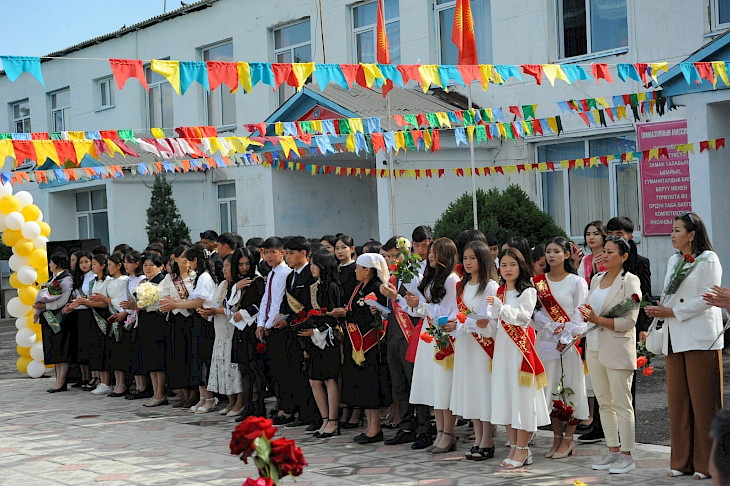 Тургунбаев бүтүрүүчүлөрдү жана окуучуларды, мугалимдерди окуу жылын ийгиликтүү аякташы менен куттуктап, облус башчысы Элчибек Жантаевдин атынан "Ыраазычылык кат", "Ардак грамота" тапшырды.