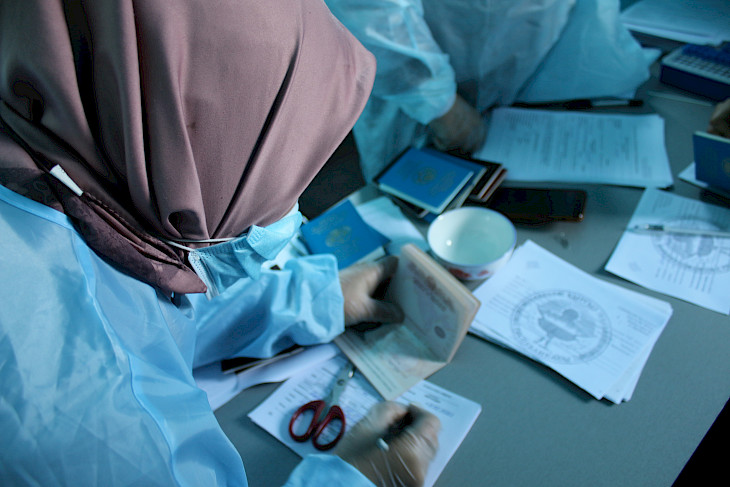 Бишкек, 17.02.21. /Кабар/. Өкмөттүн Ош облусундагы өкүлү Жарасул Абдураимов "Достук" көзөмөл-өткөрмө бекетиндеги абал менен таанышты.