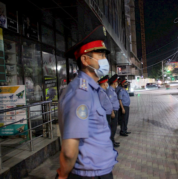 Ош ИИБнин басма сөз кызматынан кабарлашкандай, милиция кызматкерлери түн күзөтүп кызматта болуп жатышат.