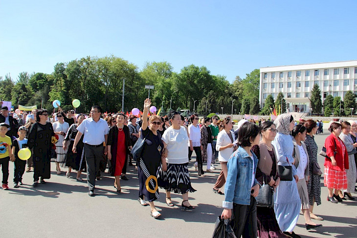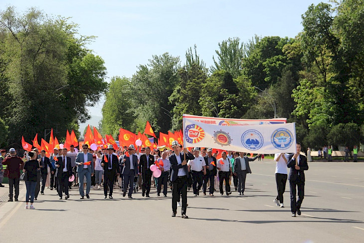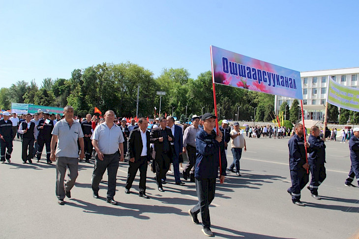 Бишкек, 01.05.22./Кабар/. Бүгүн, 1-майда, Ош шаарынын борбордук аянтында эмгекчилердин күнүнүн алкагында шаардык мекеме-ишканалардын эмгек жамааттарынын жүрүшү өттү. Бул тууралуу Ош шаардык мэриясынын басма сөз кызматынан маалымдашты.