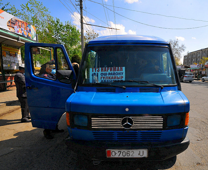 Бишкек, 23.04.21. /Кабар/. Күн мурун, 22-апрелде Ош шаарында коомдук транспортторго санитардык эрежелерди сактоо боюнча рейд жүрдү.