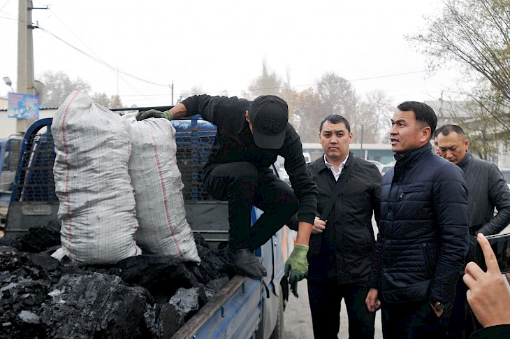 Маалыматка ылайык, анда Ош шаарынын вице-мэри Сонунбек Жунусбаев, Монополияга каршы кызматынын, Салык жана Патрулдук кызматтын өкүлдөрү менен биргеликте көмүр сатылып жаткан жайларды кыдырып, бааларын текшерди.