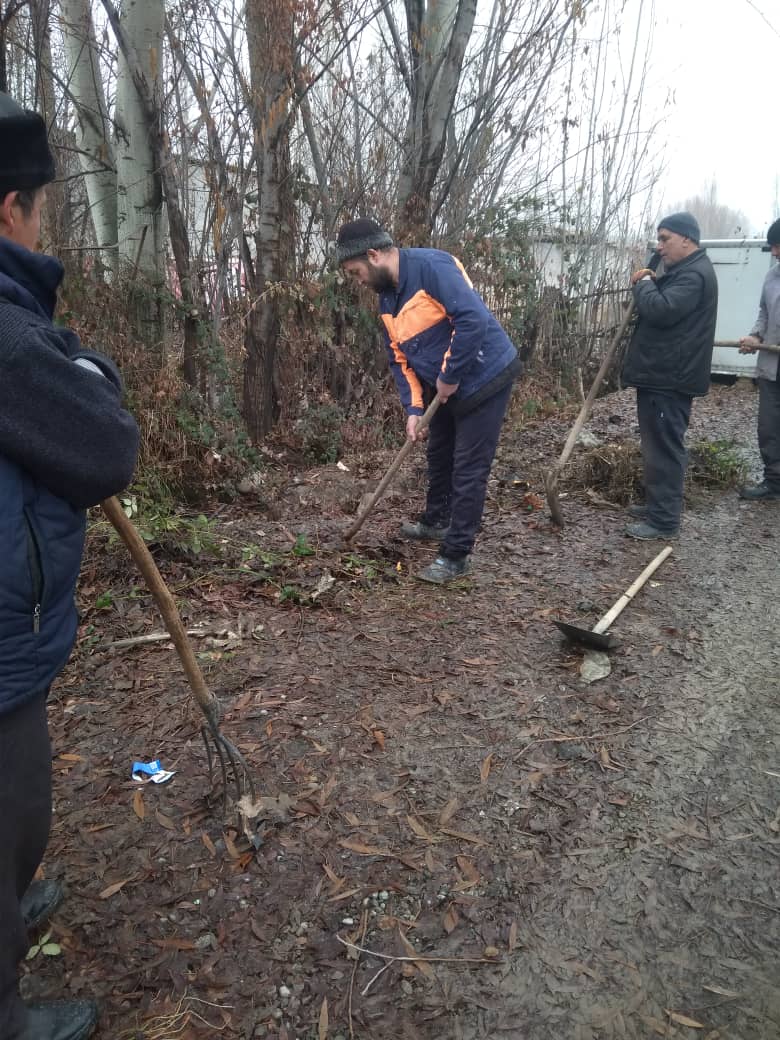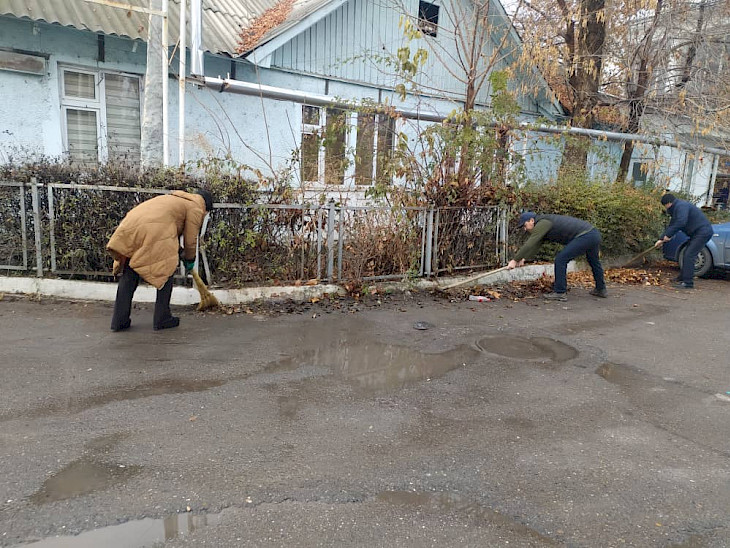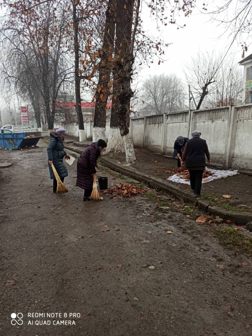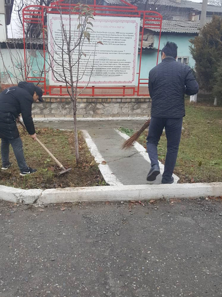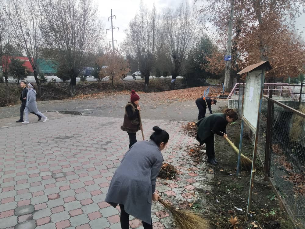 Алар бөлүнгөн аймактагы же короо жайлардагы бак-дарактардан түшкөн жалбырактардан, арыктарды акыр-чикирлерден тазалашты
