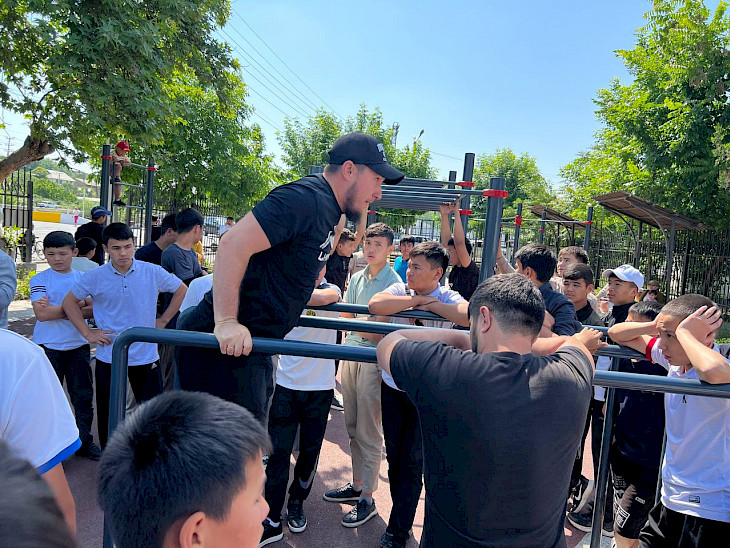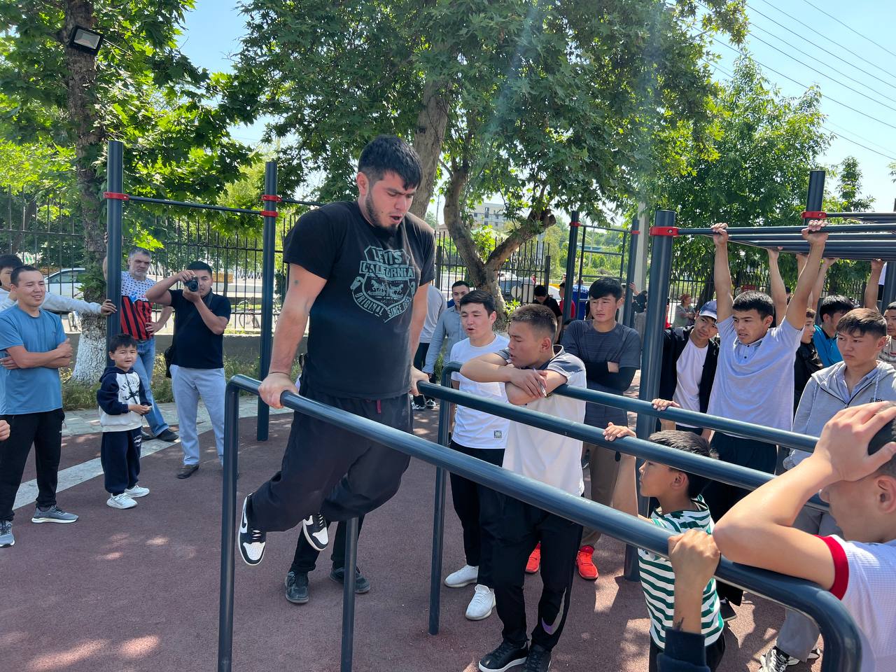 Бишкек,. 09.05.23. /Кабар/. Ош шаарындагы Токтогул Сатылганов, Алишер Навои атындагы сейил бактарында жана ВоркАут, Ордо аянтчаларында спорттун мелдештер өткөрүлдү: аркан тартыш, ордо, тогуз коргоол, гиря көтөрүү, турниктерде тартынуу, шахмат, стол тенниси.