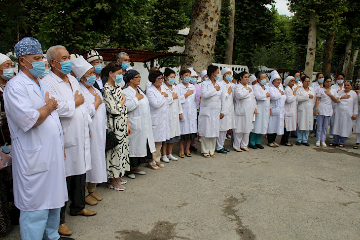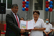 Оштогу өкүлдүн биринчи орун басары Бактыбек Алайчиев Жугуштуу оорулар бөлүмүнүн ачылышы менен кызматкерлерди куттуктап, COVID-19 оорусу менен күрөшүүгө салымын кошкон дарыгерлерге Ардак грамота тапшырып, ыраазычылыгын билдирди.
