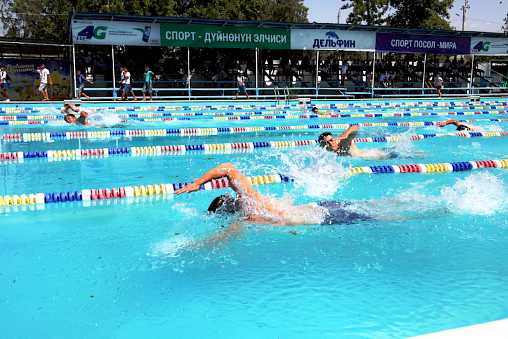 Ош, 31.07.18. /Кабар/. Кечээ, 30-июлда Ош шаардык “Дельфин” бассейнинде Бүткүл дүйнөлүк адамдарды сатууга каршы күрөшүү күнүнө карата сууда сүзүү боюнча турнир өттү.
