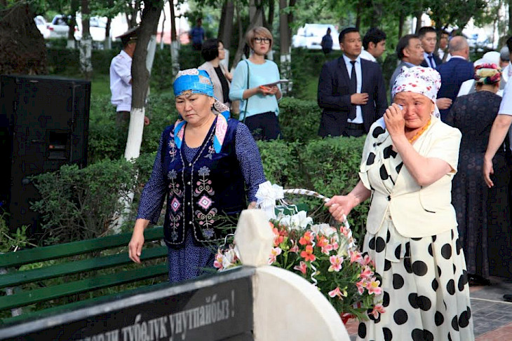 Митинг-реквиемде “Энелердин көз жашы” мемориалдык комплексине гүл чамбарлар коюлуп, улуттар аралык тынчтыктын, ынтымактын символу болгон “Тынчтык коңгуроосу” кагылды.