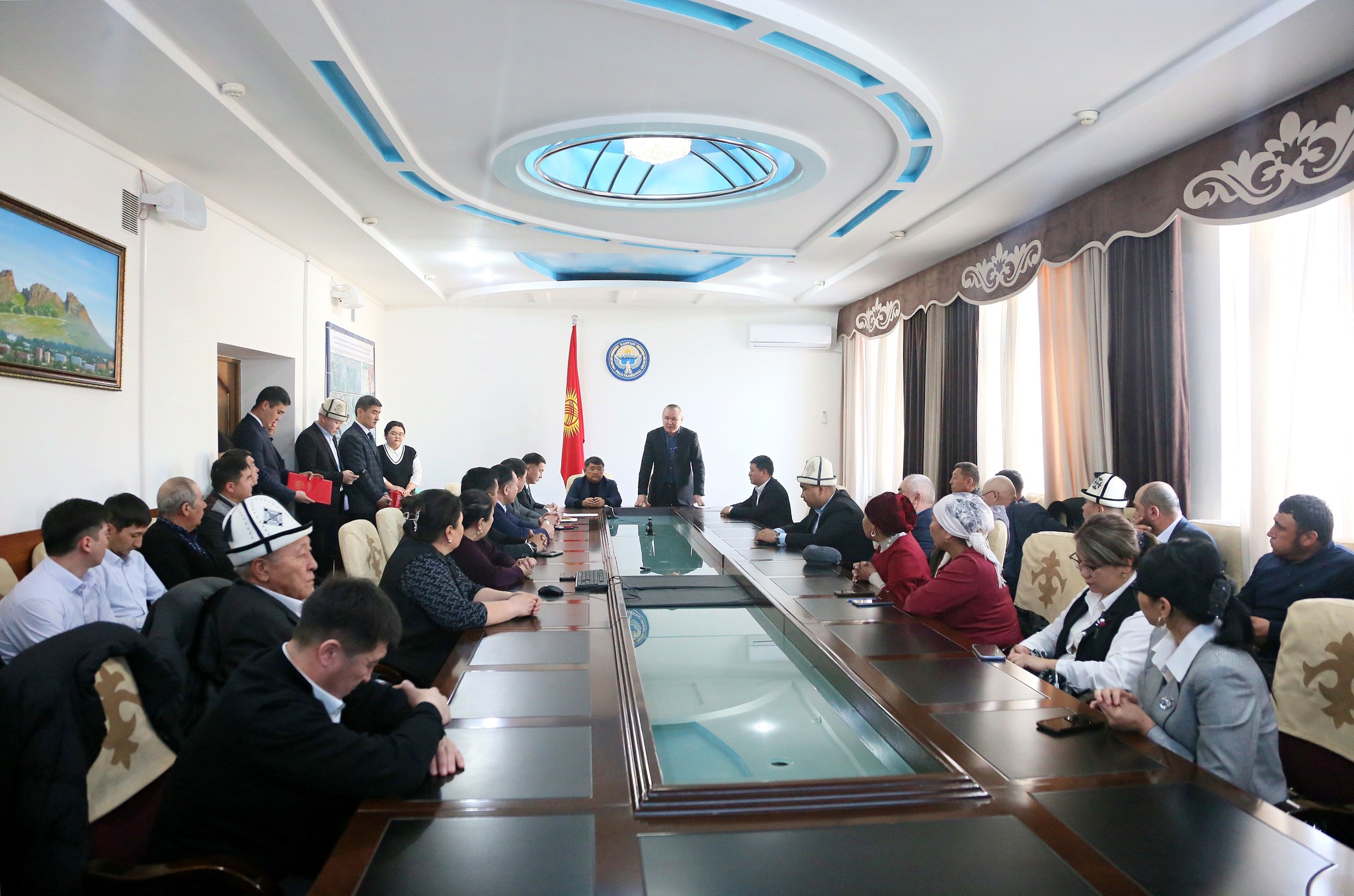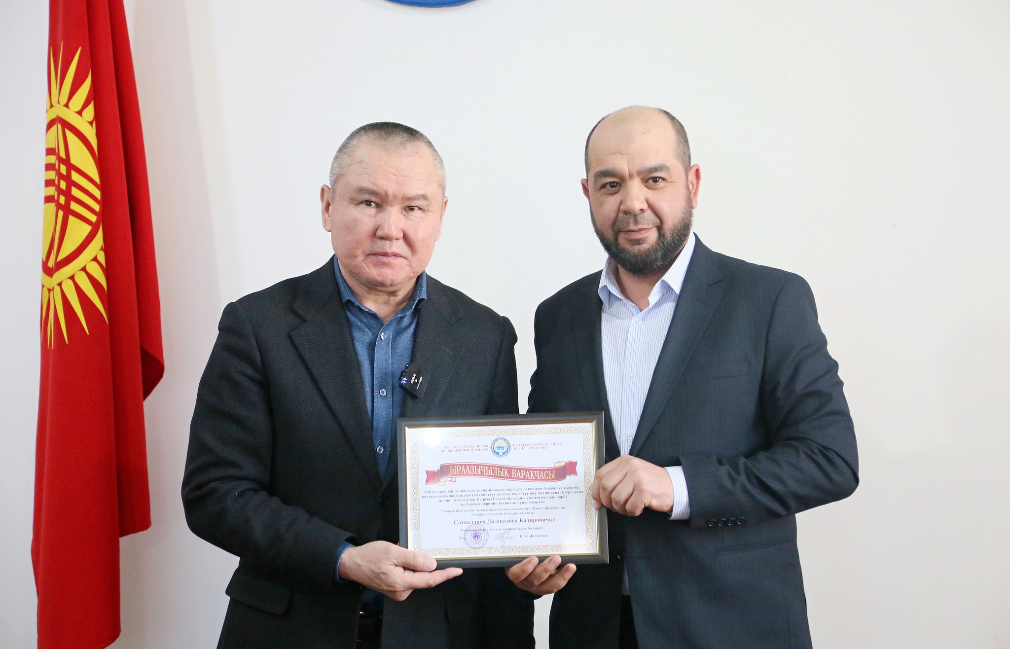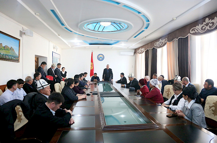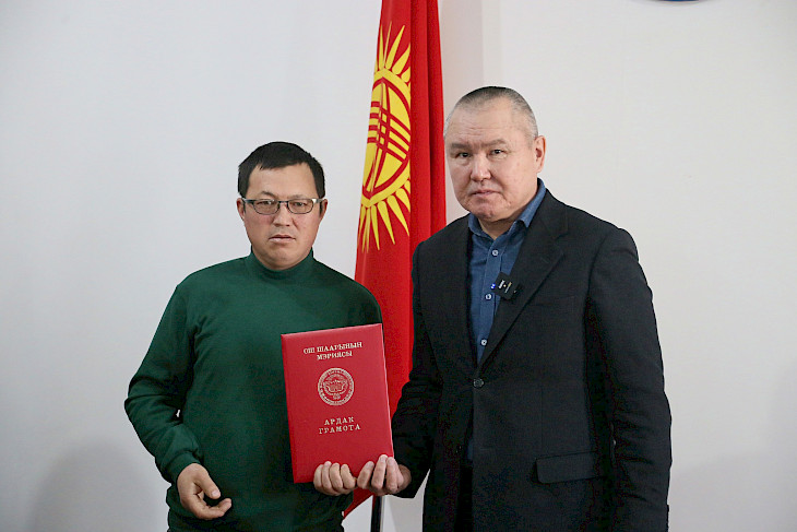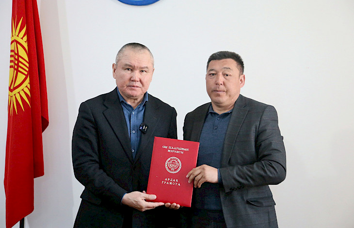 Бишкек, 15.04.24. /Кабар/. Бүгүн Ош шаарынын мэриясында Кыргыз Республикасынын турак жай жана коммуналдык чарба кызматкерлеринин күнү белгиленип, ага Ош шаарынын мэри Бакытбек Жетигенов, Ош шаардык кеңештин төрагасы Салман Назылбеков, муниципалдык кызматтардын жетекчилери, кызматкерлери, профсоюздардын өкүлдөрү катышты.