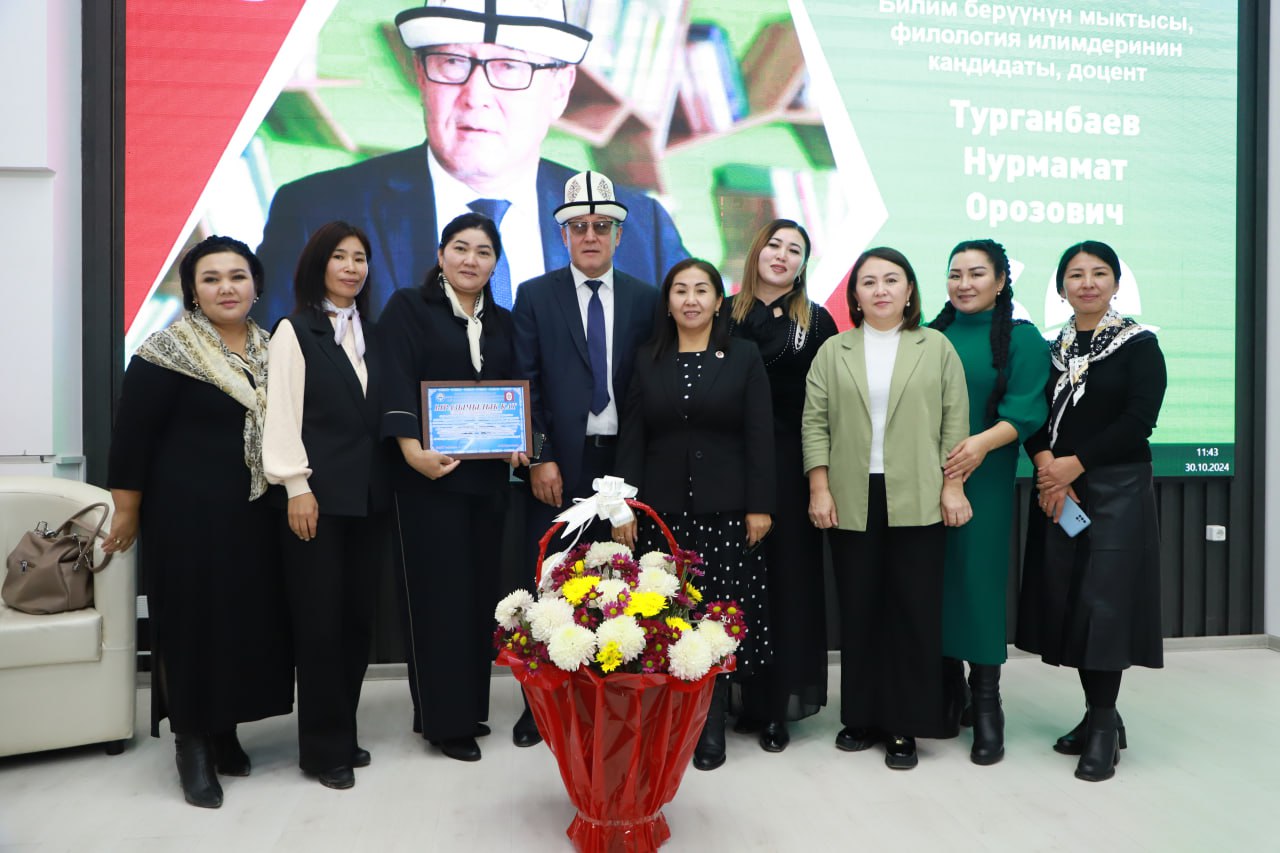 Бишкек, 30.10.24. /Кабар/. Ош мамлекеттик университетинде филология илимдеринин кандидаты, доцент, "Билим берүүнүн мыктысы" Нурмамат Турганбаевдин 60 жылдык мааракесине арналган илимий-чыгармачылык кече уюштурулду.