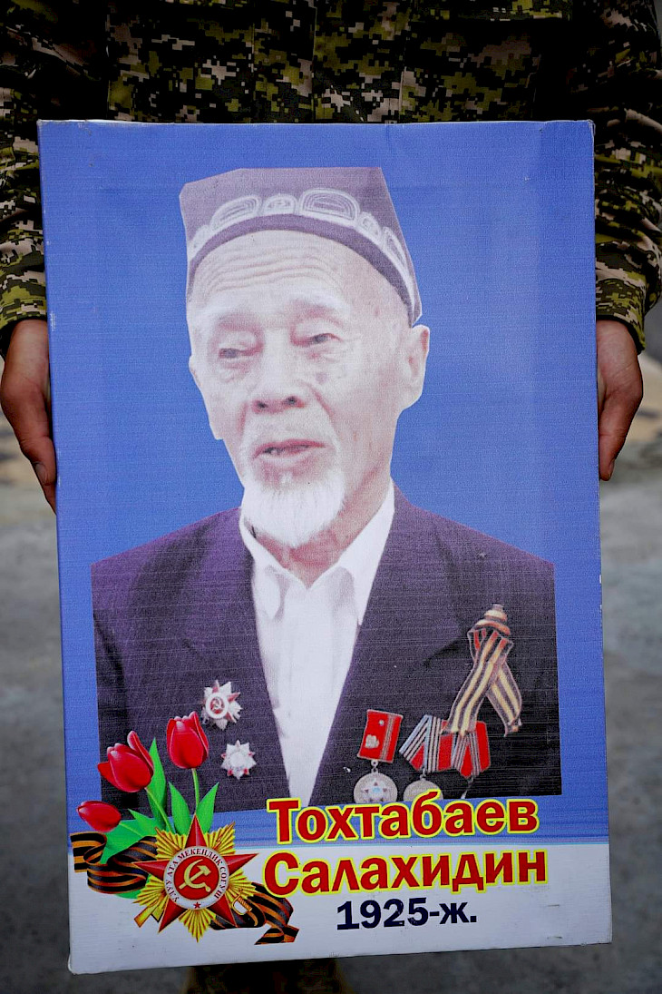 Улуу Ата Мекендик согуштун ардагери Салахидин Токтобаев 1925-жылы 10-июнда туулган. Ардагер 18 жаш курагында согушка аттанып, Белорус фронтунан Германияга чейин барып, 958- батольонунда кызмат өтөгөн. Согуштагы каармандыгы үчүн бир катар орден, медалдар менен сыйланган.