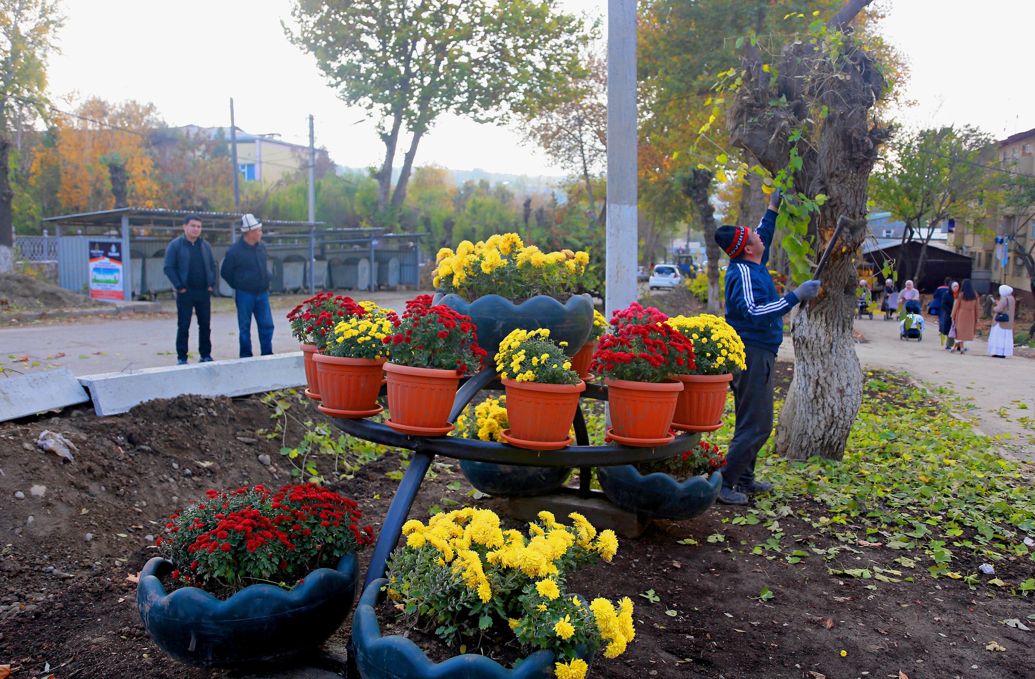 Учурда Көрктөндүрүү жана жашылдандыруу чарба комбинаты тарабынан аймакты көрктөндүрүү жана жашылдандыруу иштери колго алынган.