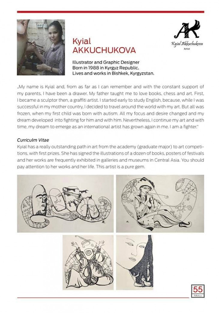 Бишкек, 15.12.21. /Кабар/. Париждин борборундагы 55 Bellechasse арт галереясында кыргызстандык эки сүрөтчү Айып Алакунов (сүрөт) менен Кыял Аккүчүкованын (графика) жеке көргөзмөсү ачылды.