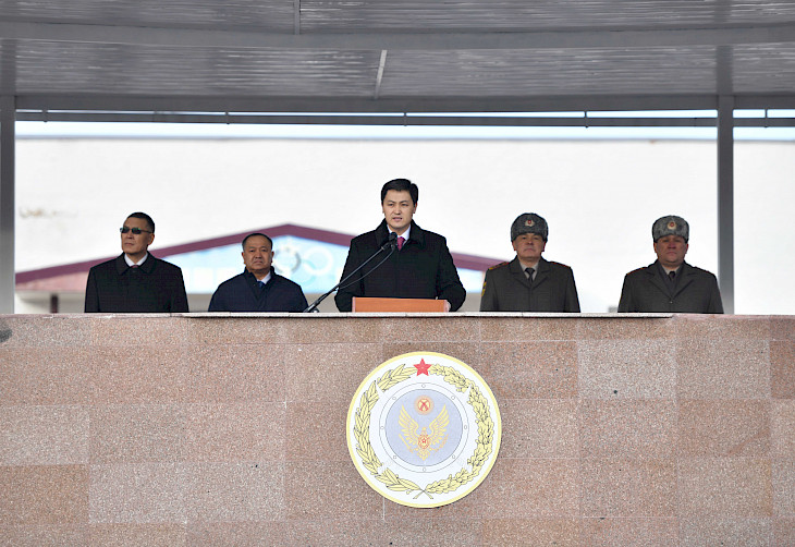 Өкмөт башчы Улукбек Марипов аскер кызматкерлерин майрамы менен куттуктап, күжүрмөн даярдыктагы ийгиликтерди каалады жана жеке курамдын бош убактысын жана күжүрмөн даярдык боюнча сабактардын сапатын жакшыртуу иретинде кеңири форматтагы мультимедиялык проектор алууга 100 миң сом өлчөмүндөгү финансылык каражатты бөлүүгө сертификатты тапшырды.
